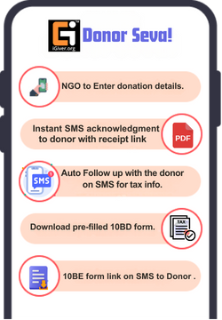 NGO admin enters donation details in the app, after one time registration with iGiver Donor Seva.